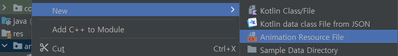 이렇게 3가지 애니메이션을 담당하는 xml 파일을 만들어보겠습니다.