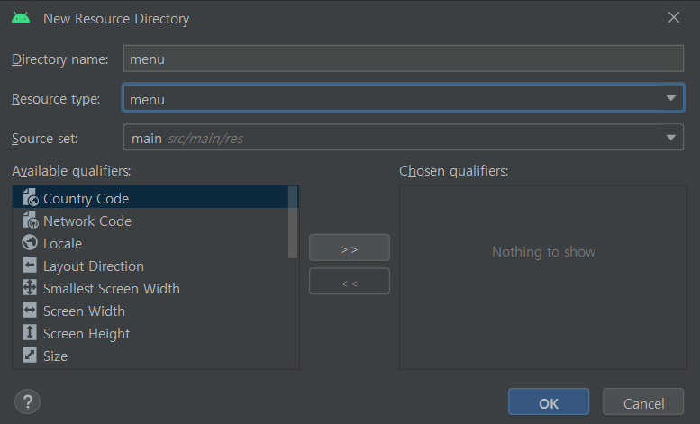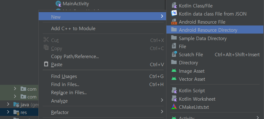 res 디렉토리 하위에 menu 리소스 디렉터리 생성